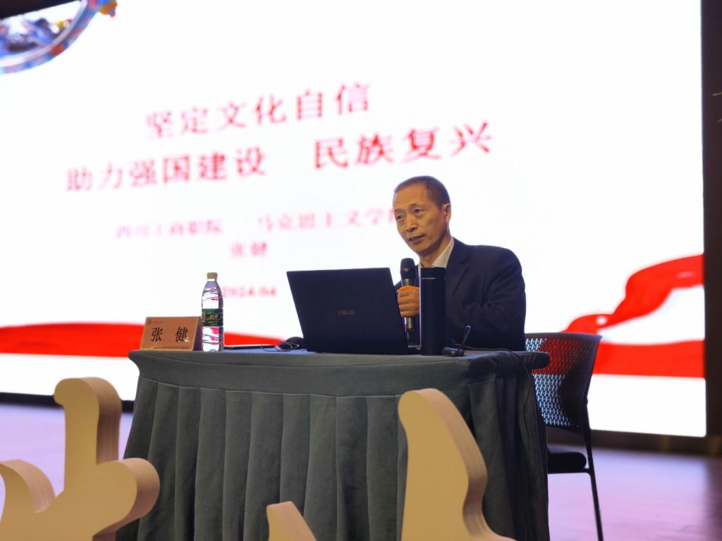 张健教授以《坚定文化自信 助力强国建设 民族复兴》为主题,从文化概说、中华民族伟大复兴与中国文化自信时代的来临、坚定文化自信,助力强国建设、民族复兴三个方面层层展开。通过对“文化自信何以成为问题?”这一问题的剖析,强调文化自信对于国家和民族发展的重要意义;通过对“何以自信”这一问题的分析,明确中华民族人民文化自信的来源。最后,张教授从多个方面总结了如何坚定文化自信。