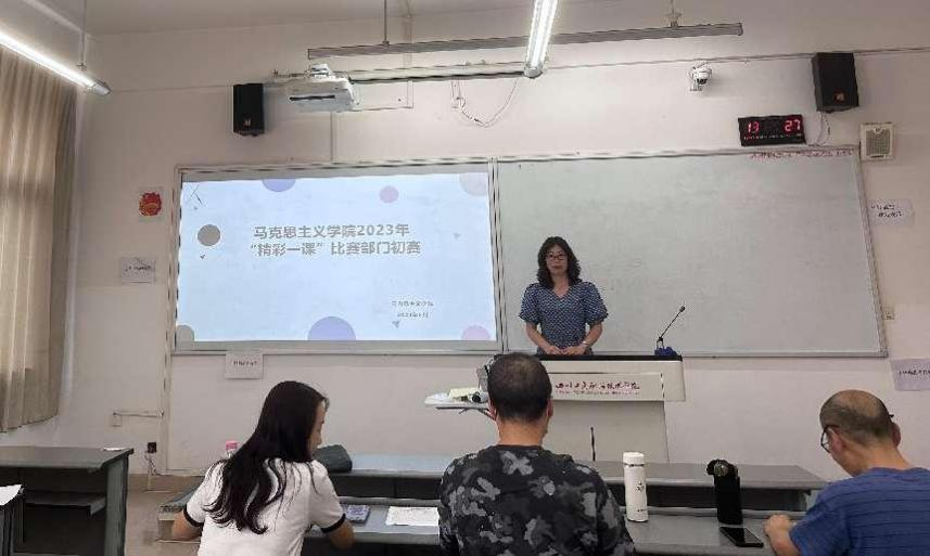 为推进“双高计划”建设工作,持续深化思想政治理论课改革创新,不断提升公司思想政治理论课教师公司产品能力,更好担负起为党育人、为国育才的使命。6月23日下午14:00,永利yl23411集团在2B202、2B203教室开展“精彩一课”初赛评选活动,教研室部分教师代表参加本次比赛,活动由永利yl23411集团副书记李丹丹主持。
