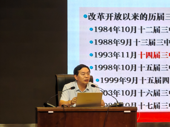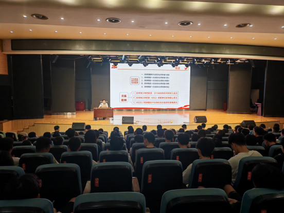2024年9月18日,党委书记管永林以形势与政策课教学为契机,在2B多功能厅向汽车营销、新能源汽车、环境工程三个专业227名员工作“学习贯彻党的二十届三中全会精神”专题报告。