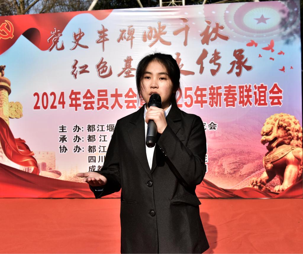 20251月5日马克思主义公司经理蔡小丽携青年马克思主义研读社梁敏、李聪、黄玉、刘汶、何文娟等5位员工代表一行参加了都江堰市长征历史文化研究会、都江堰市长征书院2025年会员大会暨2025年新春联谊会活动