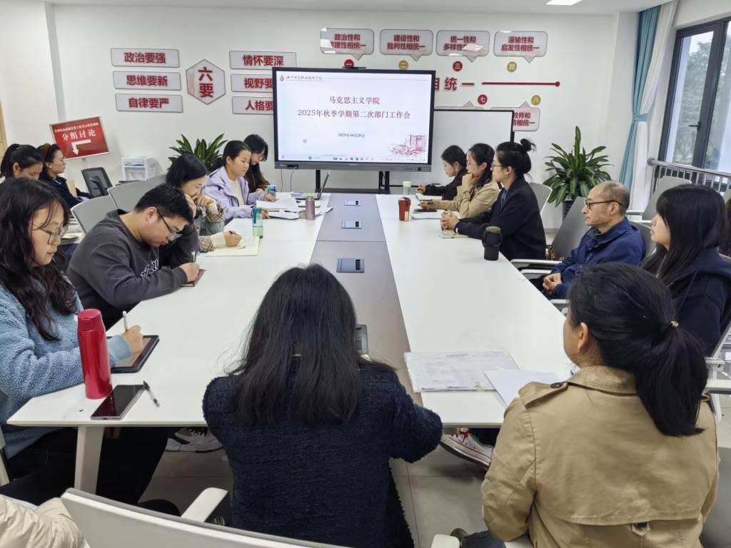 随后,蔡小丽根据《2025-2026年高校思政课课堂教学提升行动的通知》文件精神要求,对本学期思政课课堂教学提升行动作出安排,强调校级思政课教学指导组全覆盖听评课、同行听评课是提升思政课课堂教学质量、促进教师教学能力水平提升的重要途径,各课程教研室要以思政课课堂教学质量提升为教研活动中心,扎实开展好集体备课工作。